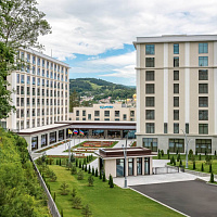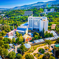 - Кисловодск 1000 м до паркаУникально! Аквапарк 1000 кв.м. с горками, каскадами, бассейнами и зоной для загара • Центр Кисловодска: 7–10 минут до Курортного парка и бульвара, Филармонии, Нарзанной галереи • Бювет с минеральной водой двух курортов: «Ессентуки-4» и «Славяновская» (Железноводск). 8–12 минут до бюветов с минеральной водой Кисловодска • Лечебные ванны с природной минеральной водой Нарзан • Бассейн 22×11 м гидромассажем, каскадами, джакузи и низкохлорной очисткой воды. Проводятся занятия аквааэробикой. Есть детская зона • Термальные зоны: финская сауна, русская баня, инфракрасная сауна, кедровая бочка (зависит от корпуса) • Территория с красивым ландшафтным дизайном. Два корпуса санатория — памятники истории и архитектуры: Дача Миклашевского и Дача Мухтарова • Комфортные номера и апартаменты. Есть номера с балконом. Во всех номерах: кондиционер, холодильник, чайная станция, телевизор, хороший Wi-Fi, фен, косметические наборы, питьевая вода в номере или на этаже • Очень хорошая вибро- и шумоизоляция во всех корпусах • Трехразовое питание «шведский стол» с большим выбором блюд и напитков • Хорошая программа развлечений: вечерняя программа с ведущими, кинопоказы, живая музыка, концерты, дискотеки, караоке • Здоровое движение: 4 вида ЛФК, тренажерный зал с современными комплексами и беговой дорожкой, крытый и открытый теннисные корты (можно взять уроки с тренером), бильярд, прокат велосипедов и самокатов • Отдых с детьми с 0 лет, лечение — с 4-х лет. Дети до 4-х лет размещаются бесплатно. Детская комната с воспитателем, открытая игровая площадка, детская зона в бассейне, аквапарк, видеозал и компьютерный клуб • Медицинские корпус работает с понедельника по субботу. В воскресенье работают кабинеты лечебных ванн • 12 программ лечения. 5 чекап-программ комплексной диагностики: Общий чекап, Пищеварение, Сердце, Щитовидная железа, Метаболический синдром • Врачи 9 профилей. Собственная лаборатория. Диагностика УЗИ, ЭКГ с нагрузкой, холтер, суточное мониторирование артериального давления, реоэнцефалография, реовазография, эндоскопические исследования • Уникально! Диагностика на аппарате «Симона 111» отражает 155 физиологических показателей, их тренды и отклонения от индивидуальной нормы • Бальнеоотделение: нарзанные ванны, 13 видов искусственных ванн, сухие углекислые ванны, 5 видов лечебных душей, подводный душ-массаж • 35 видов физиотерапии на современных аппаратах, грязелечение, массаж, барокамера «БароОкс», прессотерапия, аппаратный лимфодренажный массаж, озоно- и карбокситерапия, ВЛОК, ингаляции, ЛОР-процедуры, соляная комната, кедровая бочка, криотерапия, психотерапия • Тракционный комплекс KINETRAС — сухое вытяжение позвоночника, коррекция осанки и спортивная реабилитация • Уникально! Гравитационный тренинг 3D NEWTON — тренажер с вращением в диапазоне 360° и наклоном 0–60° в трех осях. Эффект: укрепление глубоких позвоночных мышц и устранение нарушений равновесия и осанки • Лечебные капельницы с составами, разработанными врачами санатория: Золушка, Иммунитет, Энергия+, Здоровая печень, Детокс. По показаниям подбираются индивидуальные составы • Спа и косметология: спа-капсула Alpha, PF-лифтинг лица и тела Scopula, фотодинамическая терапия, удаление папиллом и новообразований, лазерная эпиляция, плазмолифтинг, плацентарная антиэйдж-т