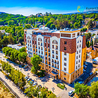 - Кисловодск 550 м до Каскадной лестницыСамый необычный санаторий региона, в котором сочетаются уникальные методики лечения: Майер-медицина, древнеиндийская Аюрведа, а также природные факторы Кавказских Минеральных Вод • Самый новый санаторий Кисловодска, запущенный в работу в 2021 году • Номерной фонд санатория соответствует категории 5*, интерьер номеров выполнен в специальной цветовой гамме, в пастельных тонах, чтобы улучшить комфортность отдыха гостей. Также есть возможность выбрать жесткость матрасов и подушек в номере • Расположен в курортном районе Кисловодска в 10 минутах ходьбы от Кисловодского парка и знаменитой Каскадной лестницы. В шаговой доступности — Нарзанная галерея и Курортный бульвар • Красивый крытый бассейн длиной 12 метров • В стоимость путевки включено посещение Spa-комплекса: сауны, бани, обертывание, детокс-пилинг • В стоимость путевки включено посещение релакс-классов: йоги, дзен, пилатеса • Специальное безглютеновое и безлактозное питание • Корпуса соединены теплыми переходами, не надо выходить на улицу, чтобы получить лечение, посетить бассейн, столовую • Собственный бювет с минеральной водой «Славяновская» • Все гости санатория в отзывах отмечают высокий уровень сервиса • Врачи санатория консультируют отдыхающих и помогают с выбором лечебной программы даже до заезда в санаторий • Санаторий рассчитан всего на 113 номеров, это позволяет предоставлять индивидуальный подход к каждому гостю