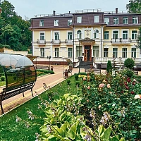 - Кисловодск 990 м до паркаКамерный санаторий с хорошим сервисом. Гости особенно отмечаются тактичность и внимательность врачей • Расположен в исторической части Кисловодска, в окружении старых курортных дач. 10–17 минут прогулки до Каскадной лестницы и входа в Курортный парк • Территория 3,2 га с обзорной площадкой, цветниками, ландшафтными скульптурами, садовыми качелями, местами отдыха — одна из самых красивых среди санаториев Кавминвод • Бювет с минеральной водой двух курортов: «Славяновская» (Железноводск) и «Ессентуки—2». 10 минут до Желябовского и Ребровского городских бюветов • Два бассейна: открытый бассейн с гидромассажем и закрытый бассейн 14×7 м • Термальный комплекс: финская сауна • 4 корпуса с номерами под разный бюджет, в т.ч. Люкс-корпус с номерами уровня 5* • Красивый вид из окон номеров на горы и историческую часть Кисловодска, есть номера с балконами • Здоровое движение: плавание, аквааэробика, 6 видов ЛФК, открытый теннисный корт, бильярд, настольный теннис, волейбольная и баскетбольная площадка • Спокойная программа развлечений: живая музыка на ужине, бесплатные обзорные экскурсии, лекции по искусству, художественные мастер-классы, концерты, кинопоказы (включая 3D-формат), дискотеки (2 раза в неделю) • В путевку включен большой объем лечения — до 4–7 процедур в день • Врачи 12 профилей. Своя лаборатория. Диагностика УЗИ, функциональная диагностика сердца и сосудов, биоимпедансный анализ тела • Расширенная офтальмологическая диагностика, подбор очков • 20 видов физиотерапии. Есть все популярные санаторные процедуры: лечебные ванны, подводный душ-массаж, соляная комната, грязелечение, озонотерапия и др. • Редкая для Кисловодска процедура — подводное вытяжение позвоночника • Редкая процедура профиля «Мужское здоровье» — микроволновая гипертермия предстательной железы • Стоматологический кабинет: терапевтическая стоматология и пародонтология • Психотерапия индивидуальная и групповая • Есть косметологический кабинет и парикмахерская