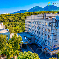 - Железноводск 800 м до паркаРасположен в центре Железноводска: в 12 минутах ходьбы до Курортного парка, Пушкинской галереи, бюветов источников • Собственная скважина и бювет с уникальной минеральной водой № 61, которую можно попробовать только здесь. Источник № 61 ессентукского типа показан для лечения заболеваний желудка, наличие кремния в составе воды способствует укреплению волос, ногтей, улучшению состояния кожи • Санаторий окружен буковым лесом и горами: из окон открывается потрясающий вид, а воздух здесь всегда чистый • Корпуса соединены теплыми переходами — не нужно выходить на улицу, чтобы посетить процедуры, бассейн, ресторан • Номера новые и уютные, с хорошей ванной комнатой. Во всех номерах ортопедические матрасы, кондиционер, фен, халаты, тапочки, качественные косметические средства. Уборка и смена полотенец каждый день • Трехразовое питание «шведский стол» в ресторане «Курортный». Это один из лучших вариантов по питанию в Железноводске — гости отмечают, что блюда на шведской линии вкусные и разнообразные • Спа-зона с бассейном 12×4,5 метра с водной горкой и гидромассажем, хаммамом, финской и инфракрасной сауной. Отдельная детская зона в бассейне. Терраса и зона отдыха с шезлонгами • Отдых с детьми с 0 лет, лечение — с 4 лет. Ведет прием врач-педиатр, есть профильная детская путевка. Работает детская комната с воспитателем, открытая детская площадка с горками, качелями, батутом. В развлекательном клубе есть детская зона с 10 игровыми консолями, детский бильярдный стол, аэрохоккей. Прокат самокатов, велосипедов, санок • Боулинг-клуб с двумя игровыми дорожками Brunswick, бильярдный зал • Охраняемая лесопарковая территория 2 га с собственным лечебным терренкуром (300 м), зонами отдыха, поющими фонтанами, тенистыми аллеями • Здоровое движение: тренажерный зал, ЛФК, аквааэробика, степ-аэробика, уличные тренажеры, скандинавская ходьба, открытая универсальная спортивная площадка с качественным покрытием, прокат велосипедов • Лечебная база полностью обновлена в 2021 году • 9 программ лечения и чекап-программа комплексной диагностики. В штате работают врачи-специалисты доктора и кандидаты медицинских наук • Собственная лаборатория и хорошая диагностическая база: УЗИ, велоэргометрия, суточное мониторирование АД и ЭКГ, эндоскопические исследования. Редкий для санаториев вид гинекологической диагностики — видеокольпоскопия • Ванны с природной минеральной водой и 8 видов искусственных ванн: пантовые, жемчужные, пенно-солодковые и др. Гидромассажная ванна Сaracalla с игольчатым массажем 20 анатомических зон • 19 методов физиотерапии на современных аппаратах • Улучшение кровообращения, кислородного обмена, мозговой активности и сна: сухие углекислые ванны «Реабокс», озонотерапия, криотерапия, электрофорез шейного отдела, электростимуляция, лекарственные капельницы • Лечение суставов: грязелечение, ударно-волновая терапия эксперт-класса Masterpuls MP200, высокотоновая терапия HiToP®Metabol, лазеро- и магнитотерапия • Массаж: общий, сегментарный, антицеллюлитный баночный, лимфодренажный, висцеральный (внутренних органов)